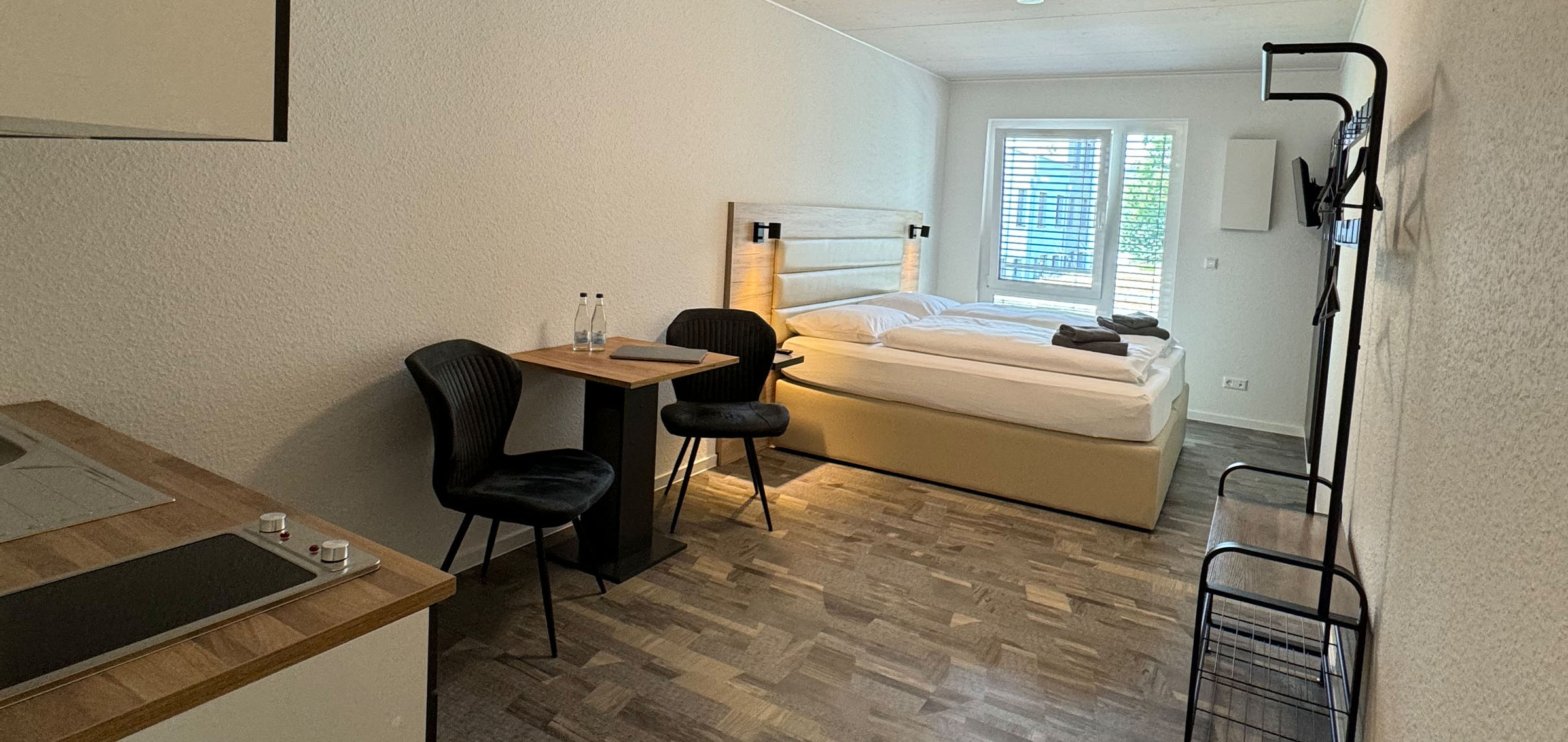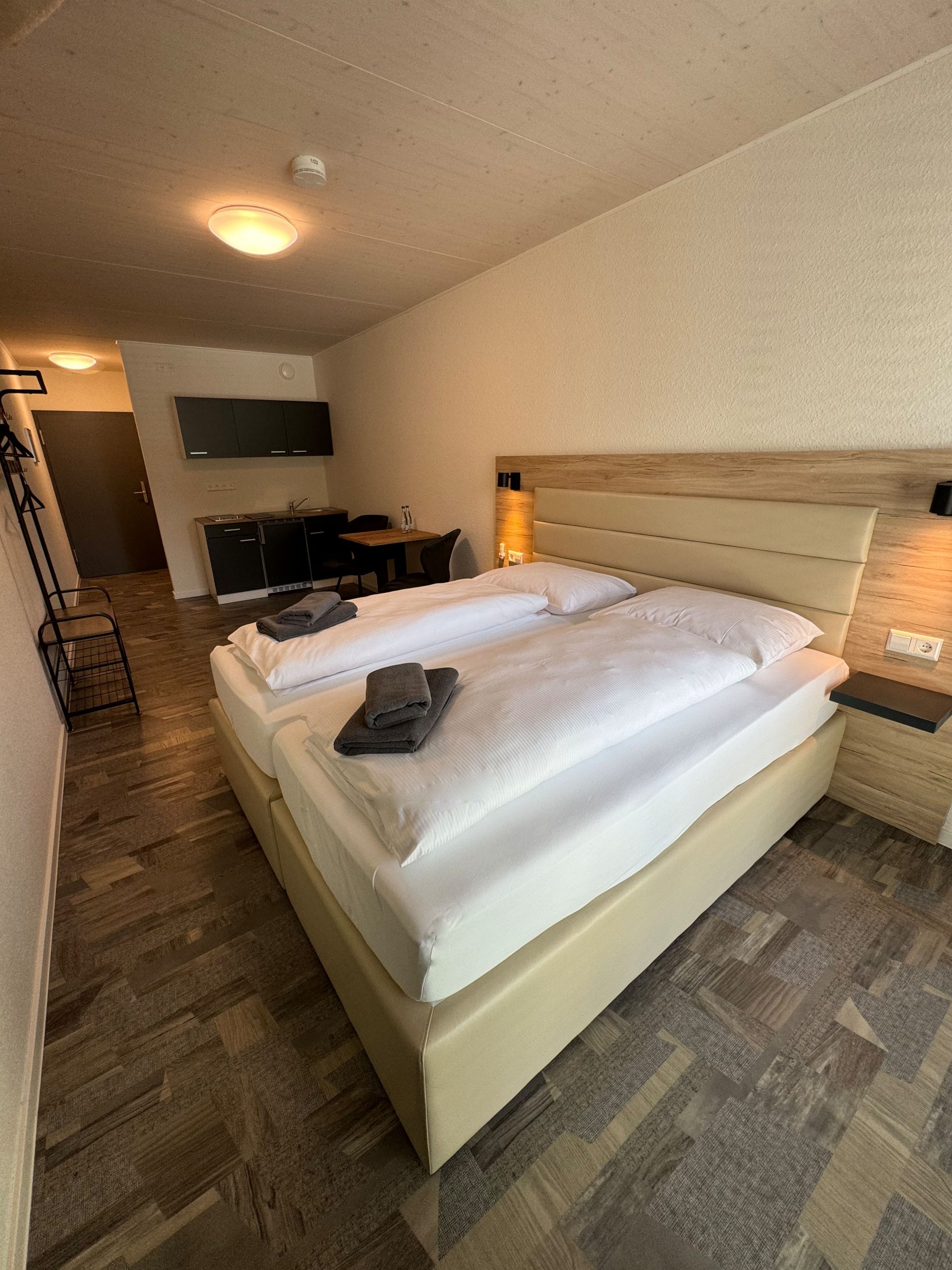 Unsere Doppelzimmer bieten höchsten Komfort und vielseitige Nutzungsmöglichkeiten. Ausgestattet mit einem teilbaren Kingsize-Bett, moderner Dusche, WC und einer praktischen kleinen Küche, bleiben keine Wünsche offen. Hier erleben Sie erstklassige Behaglichkeit und Funktionalität in perfekter Harmonie.