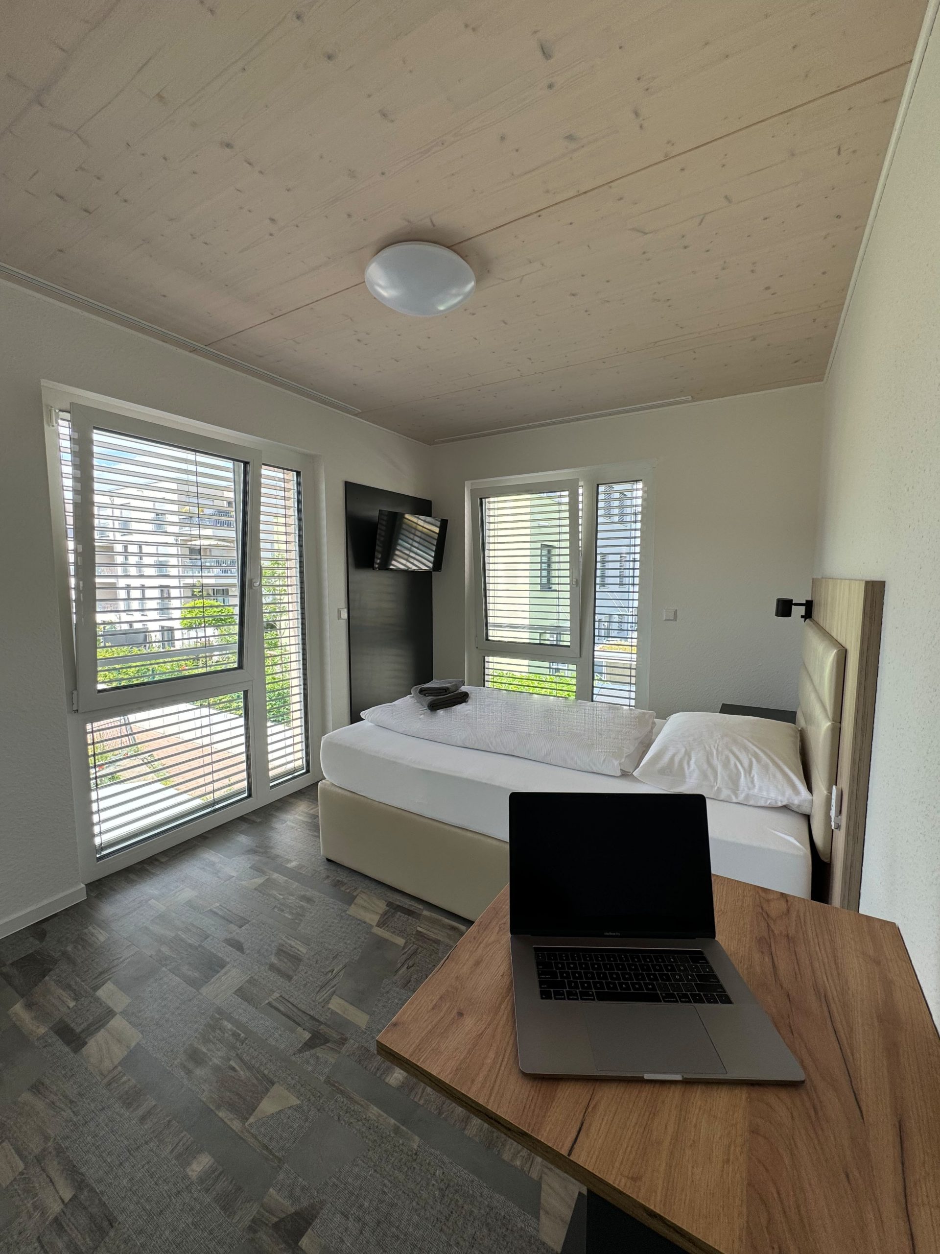 Unsere Einzelzimmer bieten höchsten Komfort und vielfältige Nutzungsmöglichkeiten. Ausgestattet mit einem großzügigen Einzelbett, einer modernen, barrierefreien Dusche, einem WC und einer praktischen kleinen Küche, lassen sie keine Wünsche offen. Hier genießen Sie erstklassige Behaglichkeit und Funktionalität in perfekter Harmonie.